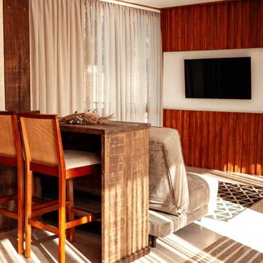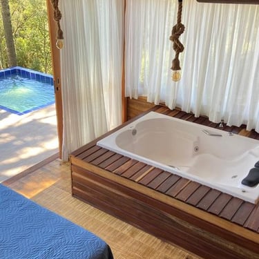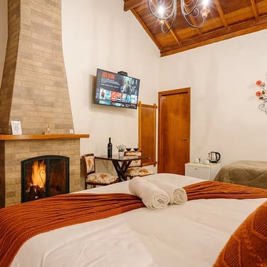 Os chalés são decorados com bom gosto, combinando elementos rústicos e modernos, e estão equipados com todas as comodidades necessárias para uma estadia relaxante. Entre os destaques, podem incluir: